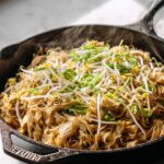 Serve your pad thai steaming hot with crushed peanuts, extra bean sprouts, lime wedges, and chili flakes on the side. I always encourage guests to customize their own bowls—squeezing fresh lime juice over the top always perks up the flavors in the best way.