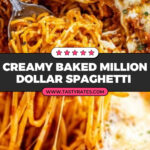 - Garnish and Serve: Remove from the oven and garnish with dried parsley flakes if desired. Serve hot and enjoy your decadent Million Dollar Spaghetti!