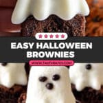• These brownies are rich and chocolatey, topped with fun marshmallow ghosts perfect for festive occasions.