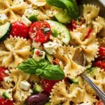 Nagi’s Big, Easy Pasta Salad is a vibrant and flavorful dish featuring bow tie pasta tossed with fresh cucumbers, cherry tomatoes, Kalamata olives, and creamy Greek feta. Enhanced by a zesty dressing of apple cider vinegar, olive oil, garlic, and herbs, this pasta salad is perfect for quick meal prep or serving a crowd with its balanced combination of fresh ingredients and bold flavors.