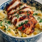 - Combine chicken and serve: Slice or chop the cooked chicken and add it to the sauced pasta. Toss gently to combine. Serve immediately, garnished with chopped fresh parsley or chives and extra Parmesan cheese if desired.