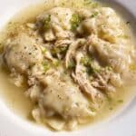 You can freeze this chicken and dumplings soup, but I recommend freezing the broth and chicken separately from the dumplings if possible. Dumplings tend to get a bit mushy when frozen and reheated, so I usually freeze just the soup base and add fresh dumplings when I’m ready to eat again.