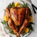 - Smaller Turkey: If you’re working with a smaller bird, just adjust roasting time accordingly and be careful to not overcrowd the cavity with aromatics to help air circulation.