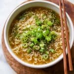 Because of the noodles, freezing the whole soup isn’t ideal. However, the broth freezes really well in silicone ice cube trays or freezer-safe containers. Just thaw and reheat the broth, then cook fresh noodles or add pre-cooked ones at serving time.