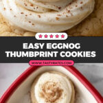These Eggnog Thumbprints are buttery, festive cookies perfect for holiday celebrations. Soft, tender cookies are filled with a sweet, slightly boozy eggnog-flavored icing and dusted with warm nutmeg, making them a delightful treat to enjoy with family and friends.