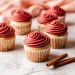 6. Frost the Cupcakes: Using a piping bag or knife, generously frost each filled cupcake with the whiskey vanilla frosting. Optionally, sprinkle with a pinch of cinnamon for extra flair.