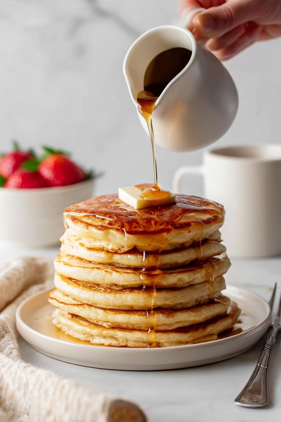 Pair your pancakes with crispy bacon or sausages for a hearty breakfast. For a lighter option, I like fresh fruit salad or a smoothie on the side. It’s a classic combo that always feels special but easy.
