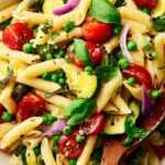 Pasta Primavera is a vibrant and fresh dish featuring penne pasta tossed with a medley of sautéed seasonal vegetables, including zucchini, yellow squash, asparagus, and cherry tomatoes. Enhanced with garlic, fresh herbs like basil and optional tarragon, pecorino cheese, and a hint of lemon juice, this easy-to-make pasta is perfect for a light and colorful spring or summer meal.