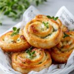 Tender Garlic Puff Pastry Pinwheels are bite-sized savory treats featuring flaky puff pastry filled with a fragrant blend of melted butter, tender garlic, thyme, and aged cheddar cheese. These golden, crispy pinwheels are perfect as appetizers or party snacks, offering rich garlicky flavor with a hint of herbaceous thyme in every bite.