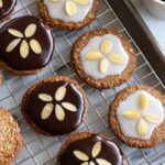 Authentic German Lebkuchen, also known as Elisenlebkuchen, are traditional soft gingerbread cookies bursting with flavors of spices, citrus peel, nuts, and honey. Perfect for Christmas, these moist and aromatic treats are baked on communion wafers or Backoblaten and finished with either a rich chocolate glaze or a simple sugar glaze, decorated with almonds for the quintessential festive touch.