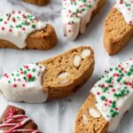 - Melt and Apply White Chocolate: Melt the white chocolate chips according to package instructions. Dip the cooled biscotti into the melted white chocolate or use a piping bag to drizzle decorative squiggles on top. Optionally, sprinkle festive decorations onto the chocolate before it sets.