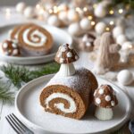 - Chill and Serve: Place the rolled cake on a platter, cover with plastic wrap, and refrigerate until ready to serve. Before serving, dust with confectioners’ sugar and garnish with gingerbread cookies if desired. Slice with a sharp knife into even pieces and keep any leftovers refrigerated.