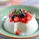 This Easy Greek Yogurt Panna Cotta is a light and refreshing twist on the classic Italian dessert, made with Greek yogurt and milk instead of cream. It features a delicate lemon essence and is topped with thyme-macerated berries for a fragrant and flavorful finish. Perfect as a no-bake dessert for warm days, it balances creamy texture with fresh fruity notes and herbaceous hints.