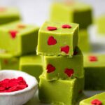 - Set the Fudge: Pour the green fudge into the prepared pan and evenly sprinkle the red heart sprinkles on top for a festive touch. Refrigerate for at least 2 hours to allow the fudge to fully set.