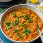 If you’re missing either green or red lentils, you can use just one type—red lentils cook faster and break down more, giving a creamier soup, while green lentils hold their shape better. Either way works well in this soup.