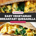 A delicious and nutritious vegetarian breakfast quesadilla filled with scrambled eggs, sautéed spinach, white beans, and melted cheese, all wrapped in whole wheat tortillas. Perfect for a hearty morning meal or meal prep.