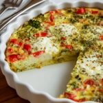 A delicious and healthy Crustless Vegetable Quiche packed with fresh vegetables, herbs, and cheese. This easy-to-make dish is perfect for breakfast, brunch, or a light dinner, featuring a low-calorie count of only 120 calories per slice without sacrificing flavor.