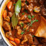 - Continue Cooking the Stew: After the initial hour, add the browned mushrooms and sliced carrot to the stew. Cook uncovered for another 40 minutes to let flavors meld and vegetables soften.