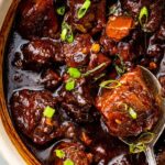 This rich and hearty Oxtail Stew features tender oxtails braised slowly in a flavorful broth enriched with aromatic spices, garlic, ginger, and creamy butter beans. Perfect for a comforting meal, this stew delivers deeply developed flavors with a slightly spicy kick from habanero peppers. The dish is finished with a thickened gravy and garnished with fresh green onions for brightness.