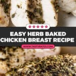 Delicious and juicy herb baked chicken breasts seasoned with a fragrant blend of garlic powder, dried basil, thyme, and oregano. This simple, flavorful recipe is perfect for a quick weeknight dinner and requires minimal prep and cook time.