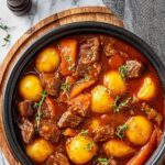 This easy homemade beef stew features tender chunks of beef chuck slow-cooked with hearty carrots, Yukon gold potatoes, aromatic garlic, and onion in a richly seasoned tomato and beef broth. Perfectly browned beef and a slow oven braise develop deep flavors in this comforting, classic stew that is both gluten-free and simple to prepare, making it an ideal meal for cozy dinners.
