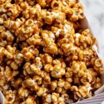 This Homemade Caramel Corn recipe features crunchy air-popped popcorn coated in a rich, buttery caramel sauce made from scratch using just six ingredients. The caramel is cooked on the stovetop to the perfect temperature, then baked onto the popcorn for a sweet, crunchy treat that’s perfect for parties, bake sales, or anytime snacking. This recipe yields about 10 to 11 cups of irresistibly sweet and crunchy caramel corn that stays fresh for up to two weeks when stored properly.