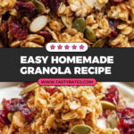This homemade granola recipe delivers a crisp, flavorful blend of oats, nuts, seeds, and natural sweeteners. Perfect for breakfast bowls, yogurt parfaits, or as a wholesome snack, this granola is easy to make and can be customized with your favorite dried fruits. Baked to a golden brown and left to set for extra crunch, it stores well and makes a thoughtful homemade gift.