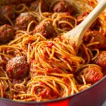 Classic spaghetti is the perfect match here to soak up the sauce and balance the hearty meatballs, but you can use any pasta you like—fettuccine, rigatoni, or even penne all work nicely.