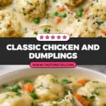 A comforting and hearty Chicken and Dumplings recipe featuring tender chicken simmered with flavorful vegetables and herbs, topped with homemade fluffy dumplings. Perfect for a cozy family meal made right on the stovetop.