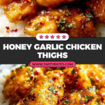 - Sticky tender boneless chicken thighs in a flavorful garlic, soy, and honey sauce.