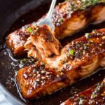 Place the salmon filets skin side down (if they have skin) in the skillet. Let them cook undisturbed for about 3 minutes, basting frequently by spooning the sauce over the tops. This basting keeps the salmon moist and lets the glaze soak in while building those gorgeous, caramelized edges. By now, your kitchen will smell like pure heaven.