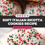 Delight in these soft and cakey Italian Ricotta Cookies topped with a sweet almond or anise glaze and colorful sprinkles. These cookies combine creamy ricotta cheese with a tender buttery dough, baked to perfection and finished with a glossy glaze that adds a delightful flavor and festive touch, perfect for any occasion.