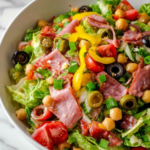 Italian Sub Salad delivers all the bold, savory flavors of a classic deli sub sandwich without the bread. This fresh, vibrant salad combines crisp romaine, salty salami, tangy black olives, zesty banana peppers, and creamy avocado, topped with crunchy roasted chickpeas for added texture. Tossed in a lemon or red wine vinegar dressing and seasoned with oregano, it’s a gluten-free, protein-packed meal perfect for a healthy lunch or light dinner.