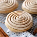 - Frost Cookies: Transfer the cinnamon buttercream frosting to a piping bag fitted with a large round tip or a zip-top bag with a corner snipped off. Pipe the frosting onto warm cookies in a spiral pattern, starting from the center outward.