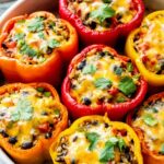 These Mexican Stuffed Peppers are a flavorful, hearty dish featuring bell peppers filled with a savory mixture of ground beef, black beans, corn, rice, and spices, topped with melted cheddar cheese. Perfect for a wholesome weeknight dinner or meal prep, this recipe combines vibrant colors and bold Mexican-inspired flavors baked to perfection in the oven.