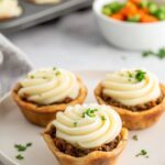 - These Mini Shepherd’s Pies have a beautiful golden bottom crust, a delicious savory filling, and a lovely pillow of potato over the top.
