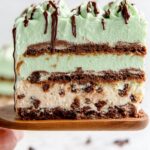 This Mint Chocolate Ice Cream Sandwich Cake is a refreshing and indulgent dessert perfect for mint chocolate lovers. Layers of classic ice cream sandwiches are combined with a minty Cool Whip mixture, sprinkled with mini chocolate chips, and topped with a luscious drizzle of chocolate sauce. It’s an easy, no-bake cake that you freeze until set, making it a perfect make-ahead dessert for hot days or special occasions.