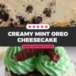 I often top this cheesecake with a sprinkle of extra crushed Mint Oreos to add texture, plus a few fresh mint leaves that pop visually and amplify the mint experience. Sometimes I drizzle a little extra melted chocolate or mint ganache if I’m feeling fancy—trust me, presentation matters and those little touches wow your guests every time.