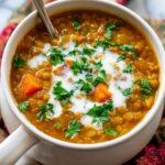 This Moroccan Lentil Soup is a hearty and flavorful dish featuring tender brown lentils simmered with aromatic spices like harissa, cinnamon, and cumin. Enhanced with fresh vegetables and a touch of Greek yogurt, this soup offers a comforting and nutrient-rich meal that’s perfect for any season.