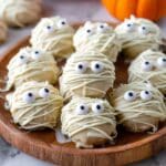Mummy Cake Pops are a fun and spooky Halloween treat made by blending Oreo cookies with cream cheese, coating them in white chocolate, and decorating with cute eyeball sprinkles. These delightful cake pops are easy to make, require just a handful of ingredients, and are perfect for parties or festive celebrations.