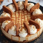 This indulgent No-Bake Biscoff Cheesecake features a crunchy Lotus biscuit base and a creamy, velvety Biscoff-flavored filling. Perfect for those who love the unique caramelized flavor of Biscoff spread, this cheesecake requires no baking and is chilled to set, making it a wonderfully easy yet impressive dessert for any occasion.