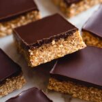 Delicious and easy No Bake Chocolate Oat Bars featuring a crispy, nutty oat base combined with rich dark chocolate topping. These bars are gluten free, dairy free, and can be prepared quickly without any baking, making them a perfect wholesome snack or treat for kids and adults alike.