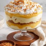 This Passionfruit Trifle is a rich and decadent layered dessert featuring boozy ladyfingers soaked in cachaça, rum, or pisco, luscious passionfruit curd, creamy coconut and passionfruit pudding, and a light whipped cream topping. A perfect balance of tropical tang and creamy sweetness, this trifle is an impressive treat for any occasion.
