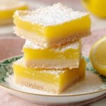 These bright and zingy lemon bars feature a buttery shortbread crust topped with a tangy lemon custard filling. Perfectly balanced between sweet and tart, this classic dessert is easy to make and sure to brighten up any gathering.