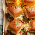 These Philly Cheesesteak Sliders are a delicious party favorite featuring tender, thinly sliced ribeye or sirloin beef, sautéed onions and bell peppers, and layers of melted provolone cheese. Nestled between soft King’s Hawaiian rolls spread with a flavorful garlic mayonnaise, these sliders are perfect for game day, casual gatherings, or any time you want a comforting, cheesy sandwich in slider form.