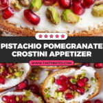 - This Pistachio Pomegranate Crostini recipe makes an outstanding holiday appetizer, combining festive colors and fresh flavors.