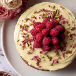 A delightful Pistachio, Raspberry and Rose Cake combining the nutty crunch of pistachios, tart bursts of raspberries, and delicate floral notes of rose extract. This moist and fragrant layered cake is perfect for special occasions or an elegant dessert treat.