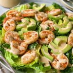 A vibrant and delicious Prawn Cocktail Salad featuring succulent jumbo prawns sautéed in garlic butter, fresh avocados, and crisp cos lettuce, all topped with a tangy Marie Rose sauce. This salad is quick to prepare, making it perfect for a light lunch or elegant starter.