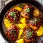 For special occasions, I like plating the chicken over a swirl of creamy mashed potatoes and decorating the plate with thin apple slices and fresh herb sprigs. It makes the dish look restaurant-worthy and really impresses guests!