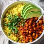 Mama’s Chickpea in Sofrito with Arroz con Gandules is a comforting and flavorful Puerto Rican-inspired dish featuring protein-rich chickpeas simmered in a vibrant sofrito sauce, paired with fragrant basmati rice cooked with green pigeon peas. This vegan and low-fat recipe delivers authentic Caribbean flavors in a wholesome and satisfying meal perfect for dinner or meal prep.